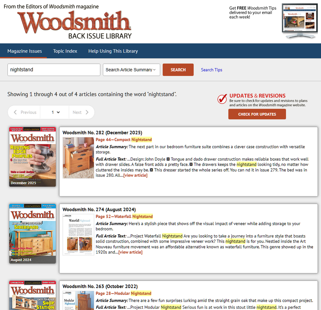 Issues 1-282 are now available on USB drive. That's 47 years of woodworking, fully searchable and printer-friendly. Every plan, every tip & every shop-tested technique at your fingertips instantly!